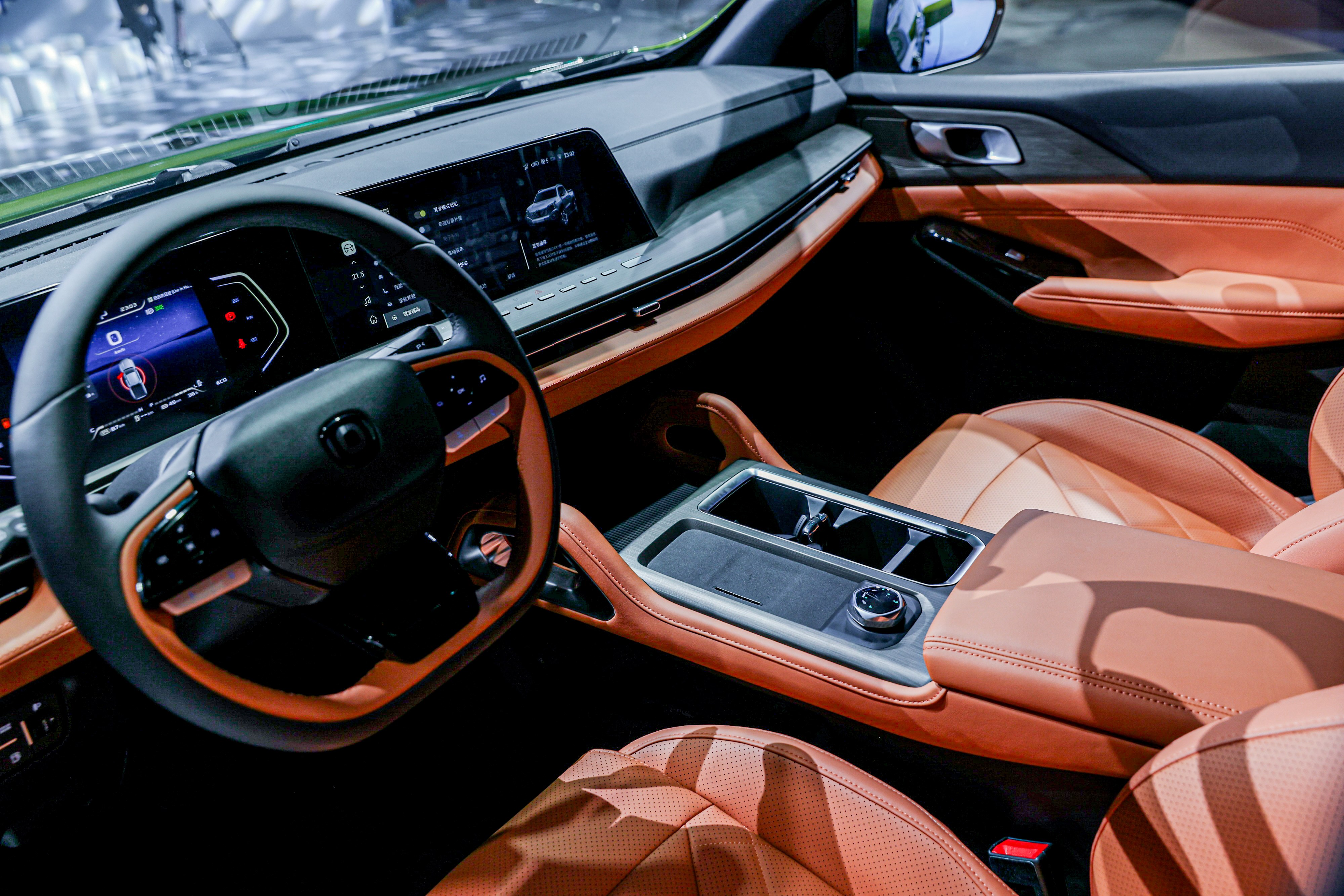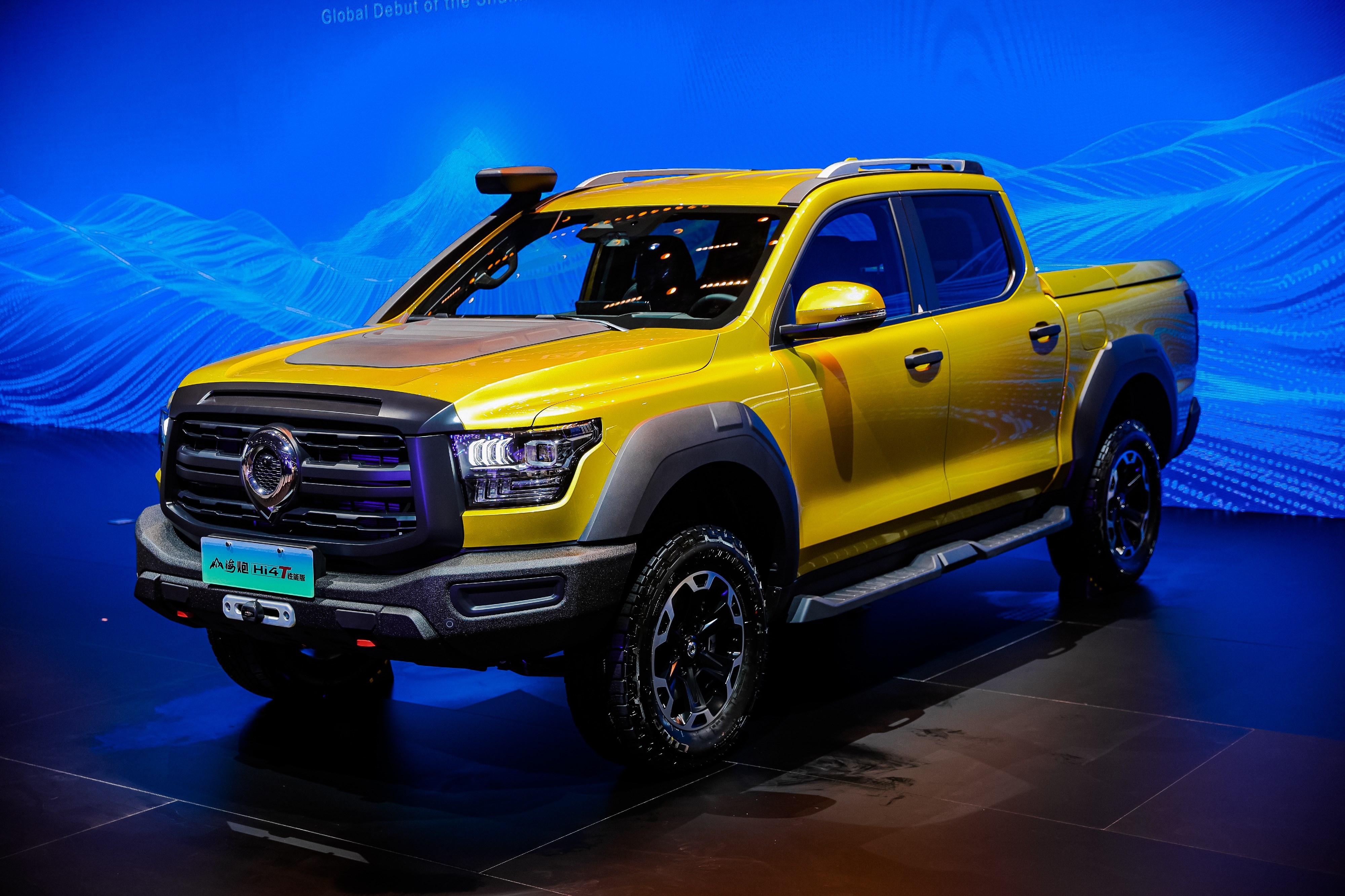 和上面的星際X相比,長城山海炮Hi4-T則更加注重越野,這一點從他的外觀上就能看出,厚重的下保險杠、較大的車輛接近角、車頭側(cè)面的涉水喉高度更是達到了車頂?shù)奈恢?,更高的進氣口也讓其大幅增加了涉水能力,避免涉水時進氣口進水,進而傷到發(fā)動機內(nèi)部,配合AT全地形輪胎,越野性能進一步提升。